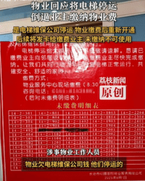 65户拒交物业费,物业停电梯,