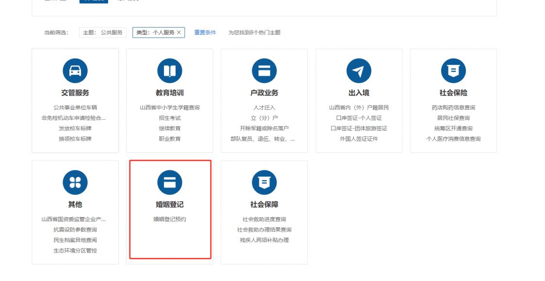 1.网上预约:登陆“山西政务服务网”(https://www.sxzwfw.gov.cn/icity/public/index?record=istrue)点击全省通办(公共服务)-查看更多-婚姻登记预约,按指引预约。
