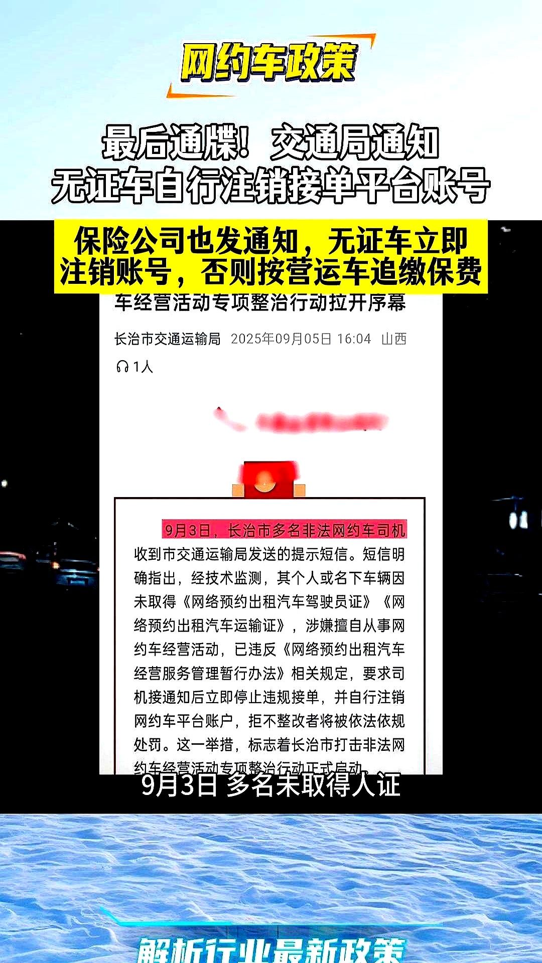 长治9月新规:车证不全,扣车+3万罚款+全网拉黑,跑单司机当场失业。